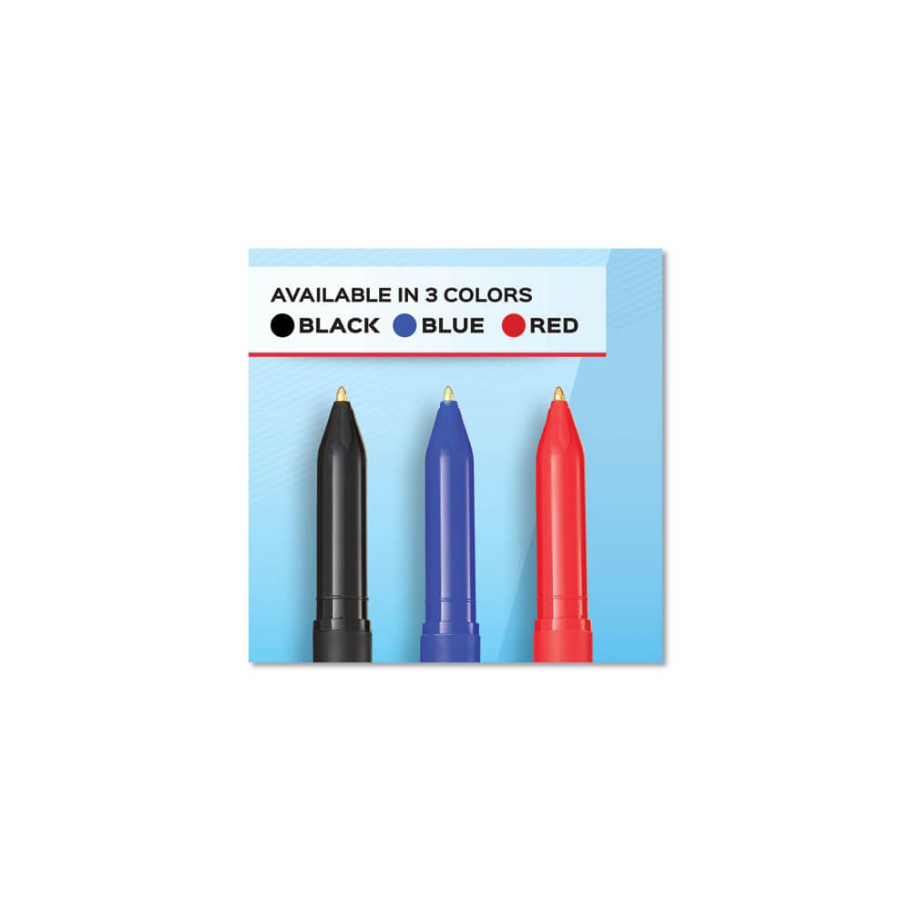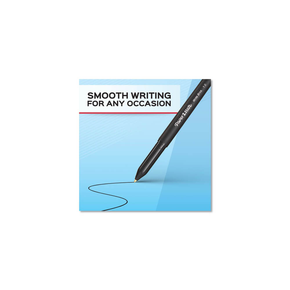 Ideal for situations where a large quantity of pens is needed, Paper Mate Stick Pens deliver reliable, smooth writing at an affordable price. These pens feature ballpoint tips that release ink upon contact with paper, reducing drag. The bold ink stands out to make a strong, professional impression.