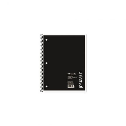 Wirebound Notebook, 1 Subject, Medium/College Rule, Black Cover, 11 x 8.5, 100 Sheets