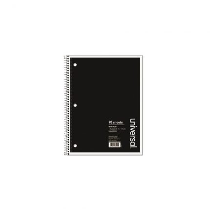 Wirebound Notebook, 1 Subject, Medium/College Rule, Black Cover, 10.5 x 8, 70 Sheets