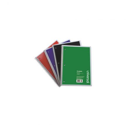 Wirebound Notebook, 1 Subject, Wide/Legal Rule, Assorted Covers, 10.5 x 8, 70 Sheets, 4/Pack